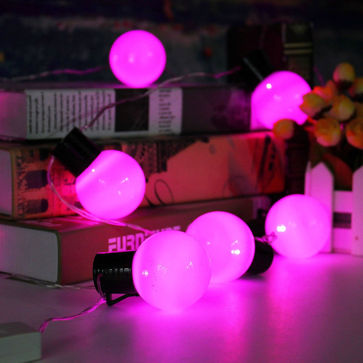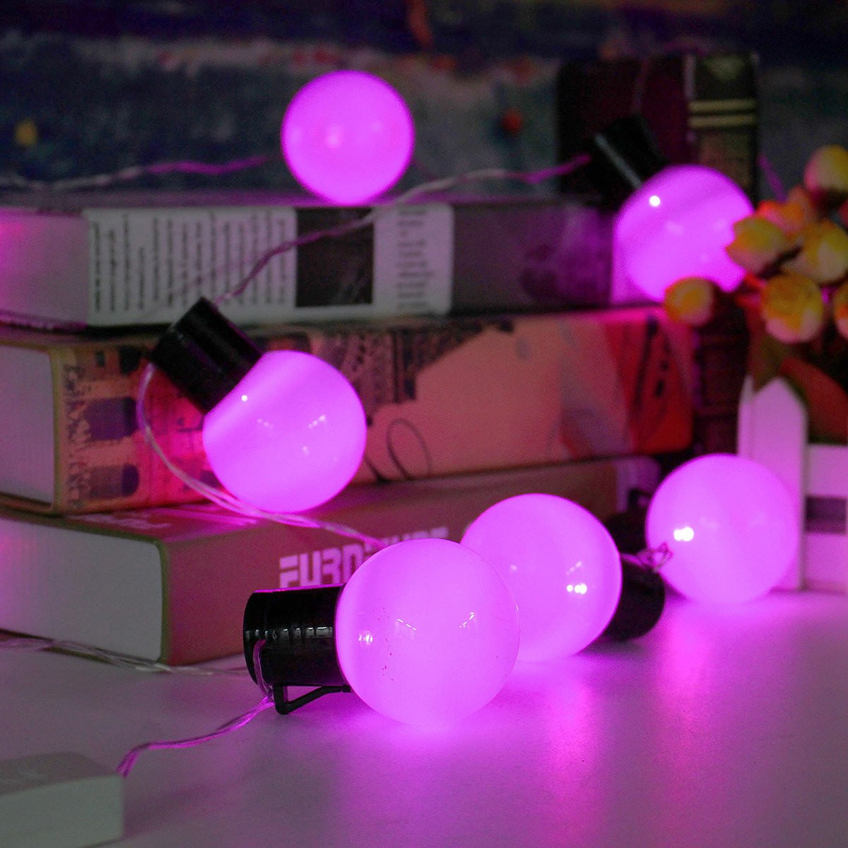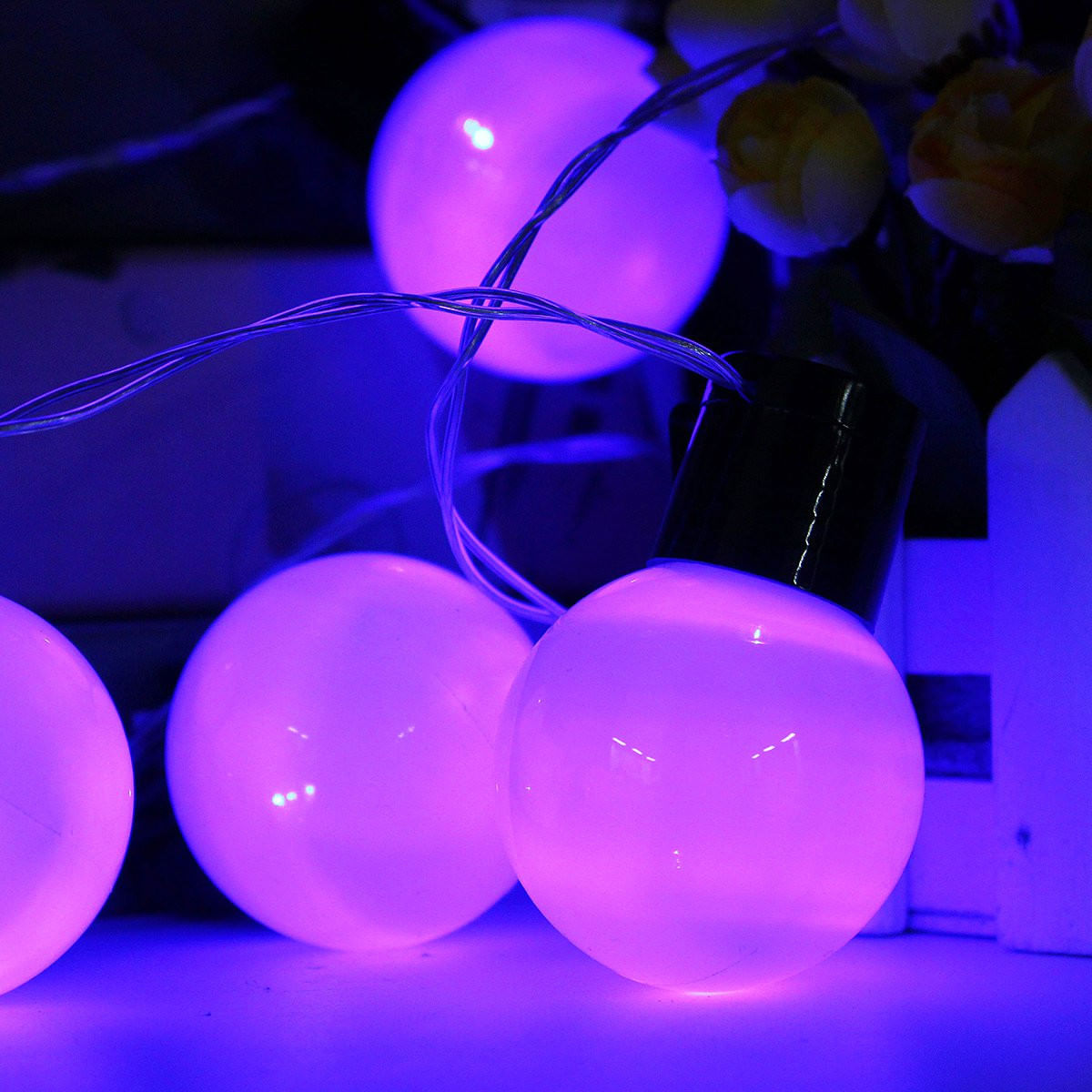 Specification:Voltage: 110VLED ball quantity: 38 pcsWire color: Clear WhiteLight material: PP&TPR&CR-V steelLight color: RGB/Blue/Cool White/Pink/Purple/Warm White/Yellow/RedLight model:Steady onPlug stype: USBall size: 5×7.2 cmLight length: 10 mPower wire:about 1.26 mDistance between bulb:23cmFeature:The light can easily build the festival or party feel you desire.Perfect to decorate your house, room, garden, tree, etc.Ideal for Christmas, wedding, ceremony, and other festivals and events.Saving Power and money and environmental protection.Note:Due to the difference between different monitors, the pictures may not reflect the actual color of the item.Kindly reminder: We will send you a free plug adapter according to your country/area.Package included:1x10m Ball LED String Light1xUS Plug