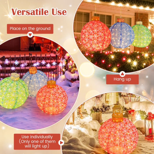 3-Piece Pre-Lit Pop up Christmas Ball Set with Warm White LED Lights