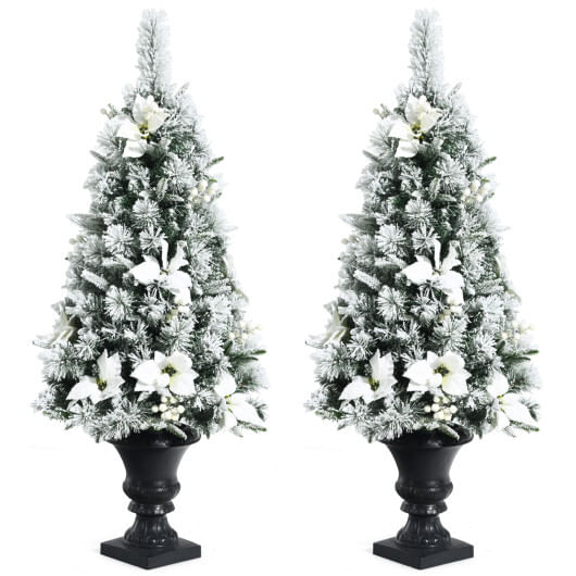 Specifications: Color: Green Material: New PVC New PE plastic Overall dimensions: 4′ x 1.8′(H X D) Net weight: 10 lbs Number of tips: 223 (156 PVC tips 33 pine needles 34 PE tips) Number of lights: 100 Box Qty: 1(May vary by batch)Package includes: 1 x Pre-lit snow flocked entrance tree