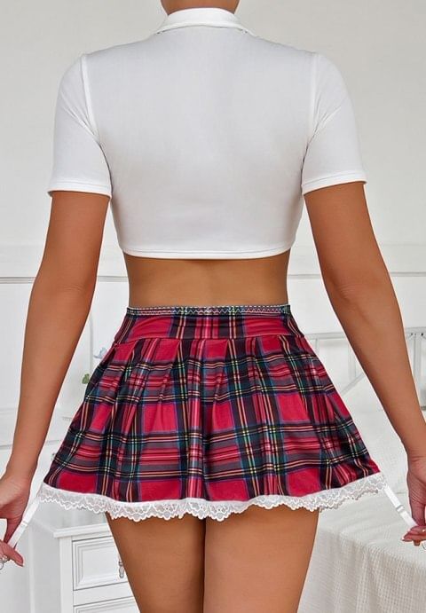 Sexy School Girl Lingerie for Women Student Outfits Roleplay Lingerie Set with Plaid Mini Skirt