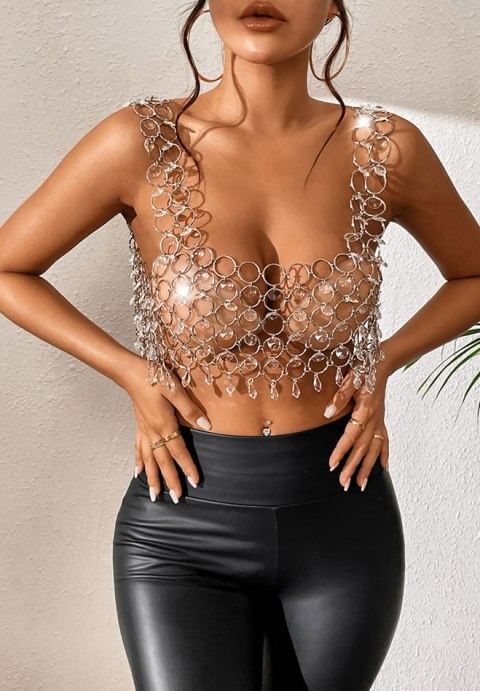 Add some sparkle to your sexy look with these sexy lingerie, We recommend hanging delicately on a fabric hanger to maintain its shape. ( Cropped Top only )